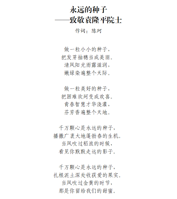 公益放映电影《袁隆平》,创作歌词《永远的种子》,组织学习英雄事迹……beat365师生用多种形式深切悼念和缅怀袁隆平。