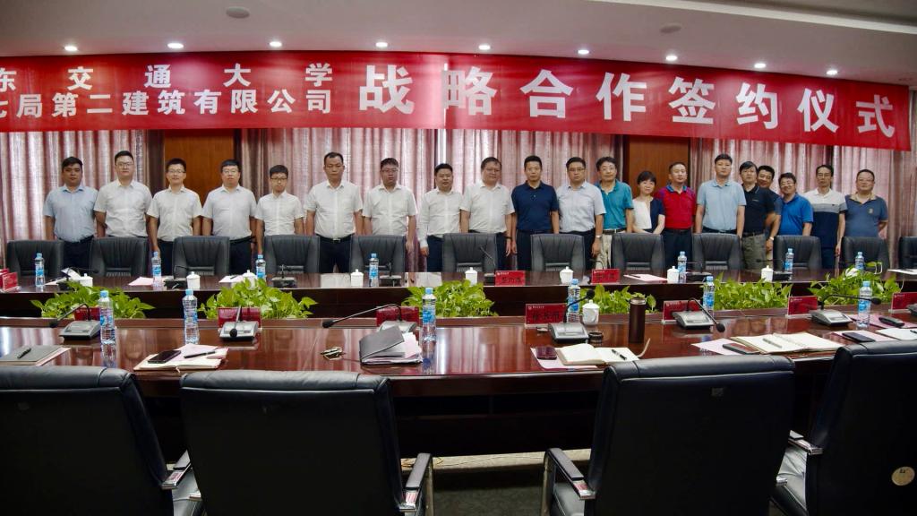 7月13日,中建七局第二建筑有限公司总经理陈海波一行来校交流座谈,签署战略合作框架协议。校党委副书记、副校长徐长节出席,并见证签约。