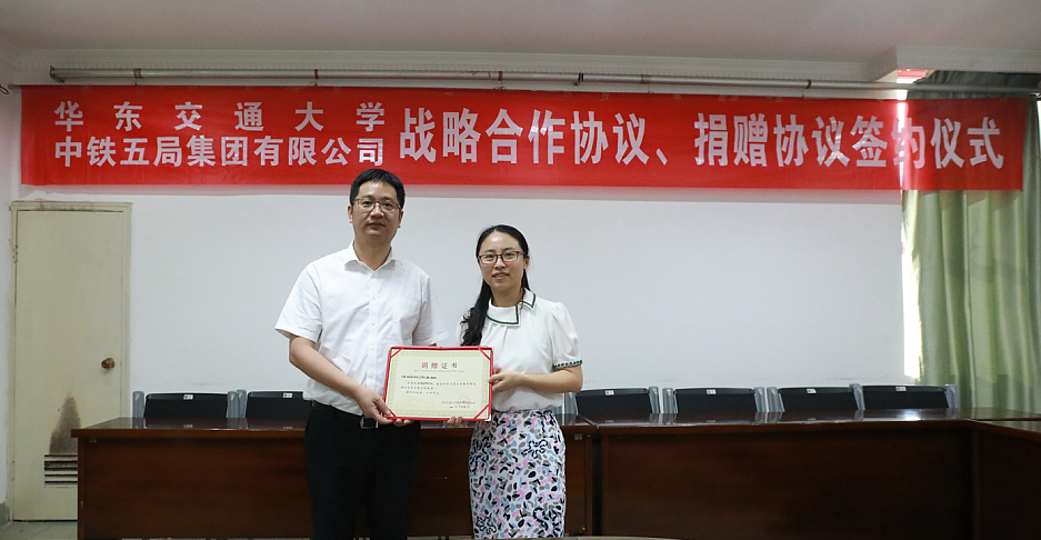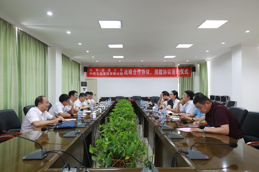 外联处(校友办、基金会)、教务处(评估中心)、科发院(科研处)、招就处、继续教育学院负责人,中铁五局负责人共同参加捐赠签约仪式。