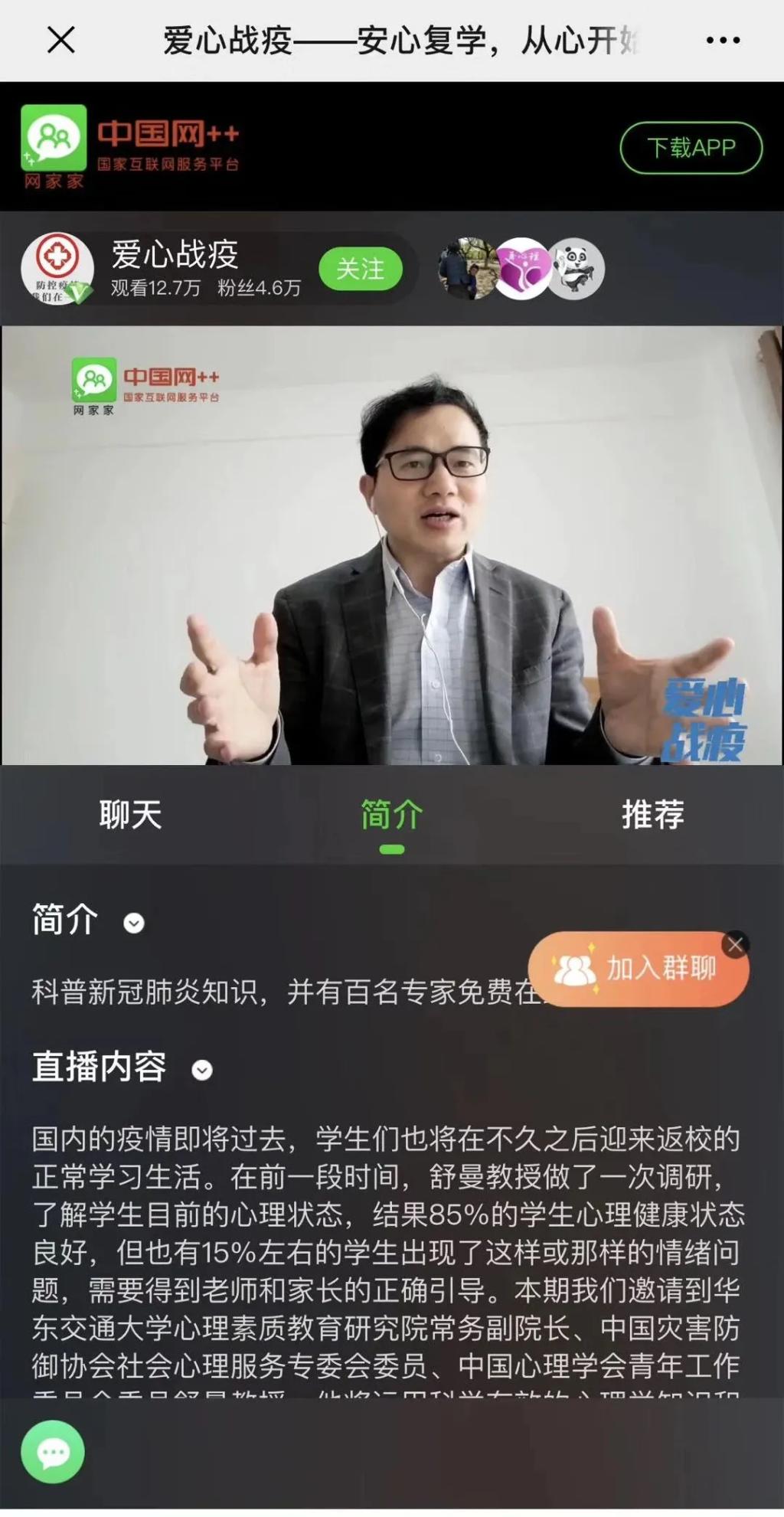 舒曼在新冠肺炎疫情期间积极开展线上心理援助。