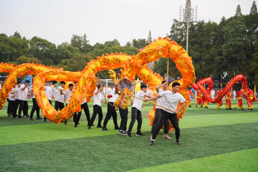 随着欢快的旋律,青春学子带来激情四射的健美操表演,展现华交人铁肩担使命的自信;来自16个学院的16条巨龙腾空而起,龙头高昂,时而跃起、时而盘旋、活灵活现,带来一场精彩绝伦的舞龙表演,彰显华交人铁手创大业的担当;队列整齐的武术表演动作整齐划一,如行云流水般潇洒自如,表达华交人铁心跟党走的决心。