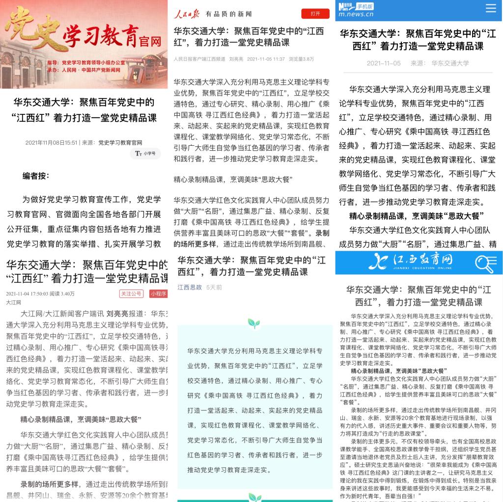beat365中文唯一官网充分利用马克思主义理论学科专业优势,聚焦百年党史中的“江西红”,立足学校交通特色,通过精心录制、用心推广、专心研究《乘中国高铁寻江西红色经典》,着力打造一堂活起来、动起来、实起来的党史精品课,实现红色教育课程化、课堂教学网络化、党史学习常态化,不断引导广大师生自觉争当红色基因的学习者、传承者和践行者,进一步推动党史学习教育走深走实。中央党史学习教育官网、人民日报客户端、新华网、大江网、江西思政、江西教育网、凤凰网、新浪网等媒体纷纷聚焦报道。现将原文内容转载如下: