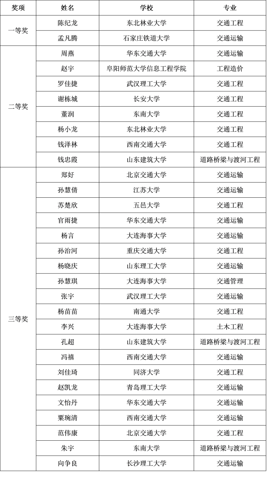据悉,“中国交通优秀学子”奖旨在奖励全国高校交通类专业院(系)学习成绩优秀、表现优异、全面发展的本科生,引领广大青年学生勤奋学习、砥砺品格、全面发展,为实现交通强国梦不懈奋斗。2021年“中国交通优秀学子”评选大赛共有来自全国28所高校的69名2018级交通类本科生参赛,最终来自19所高校的30名候选人获奖。