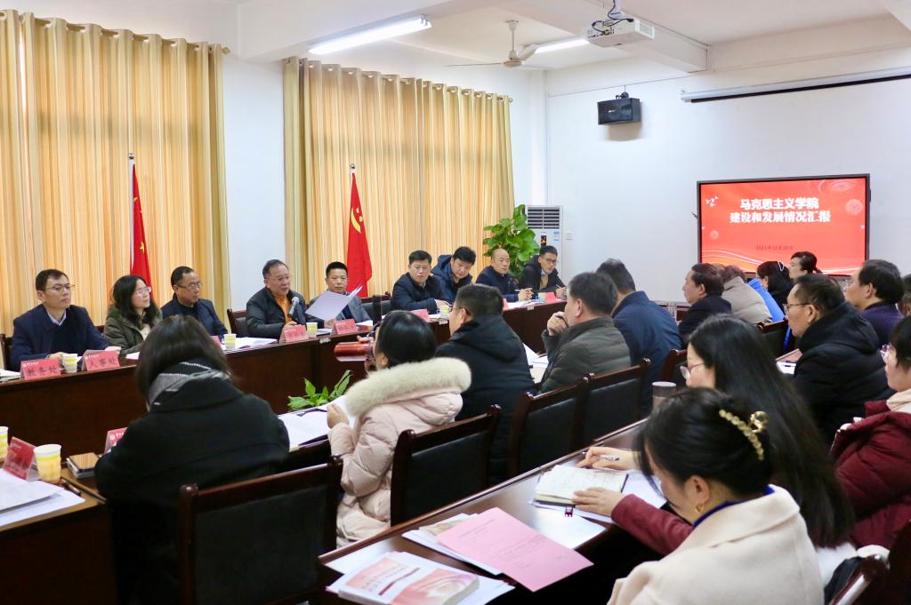 12月28日,校党委书记柳和生在马克思主义学院主持召开现场办公会,研究推进思想政治理论课建设和加强马克思主义学院建设相关事宜。校党委副书记、校长徐长节,党委副书记肖长春出席会议。