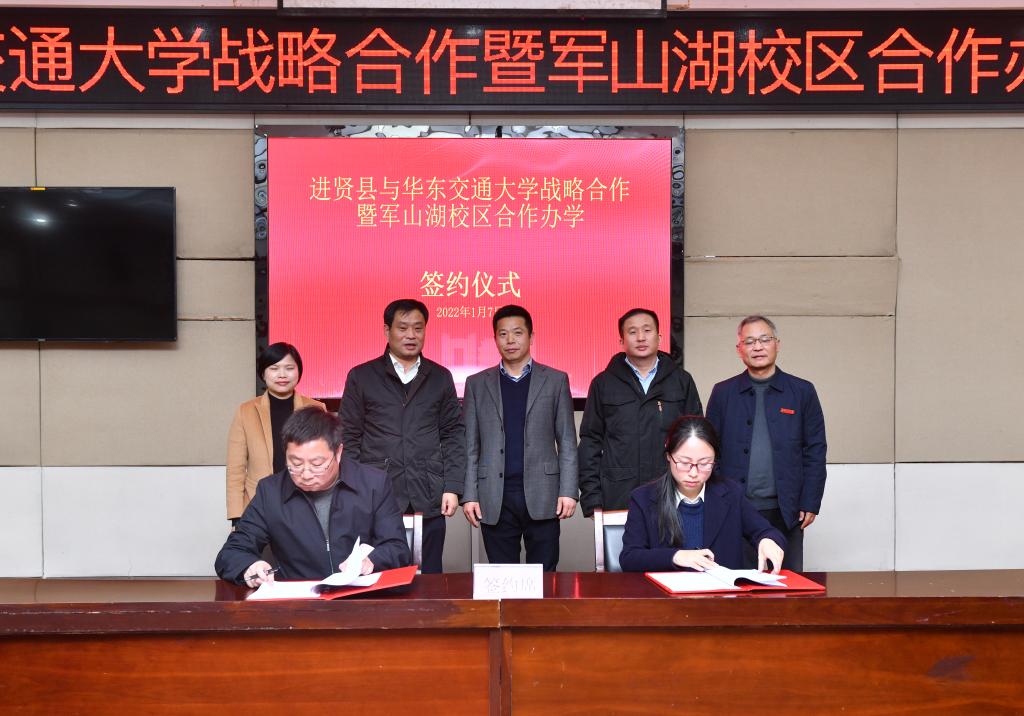 1月7日,beat365与进贤县战略合作暨军山湖校区合作办学签约仪式在进贤县举行。校党委副书记、校长徐长节,进贤县委书记徐强,江西青花九龙置业有限公司董事长樊福根出席签约仪式。校党委委员、副校长罗文俊与县委常委、县政府常务副县长杨志文分别代表双方签订战略合作框架协议。继续教育学院(高职学院、职教学院)、进贤县人民政府、江西青花九龙置业有限公司负责人分别代表三方签订beat365中文唯一官网军山湖校区合作办学框架协议书。