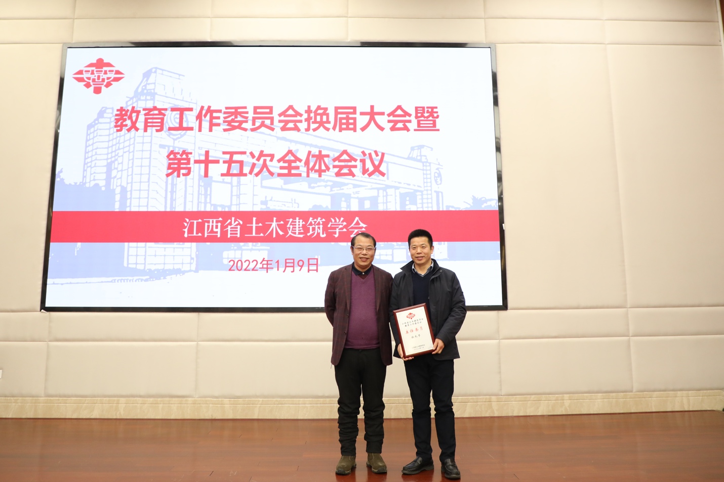 江西省土木建筑学会理事长许秋华为徐长节颁发聘书。