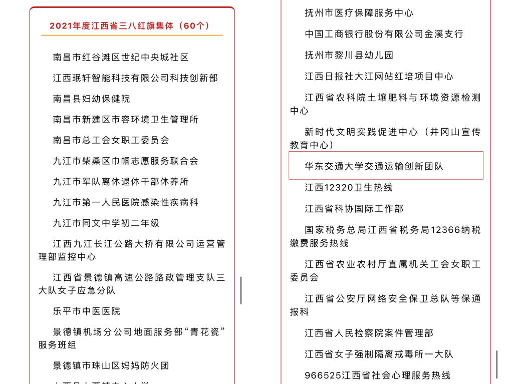 beat365交通运输创新团队获评江西省三八红旗集体。