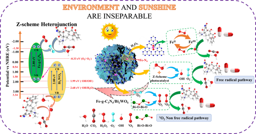 光芬顿技术作为一种环境友好的高级氧化技术,因其成本低、操作简单、反应条件温和、效率高等优点常用于降解新污染物。但传统的光芬顿技术存在光生电子浓度低、可回收性差和Fe3+/Fe2+转化效率相对较低等缺点,导致其在实际应用中受到限制。近年来,Z型异质结的光芬顿技术因其强氧化能力和抑制光生电子和空穴复合的能力,受到越来越多的关注。