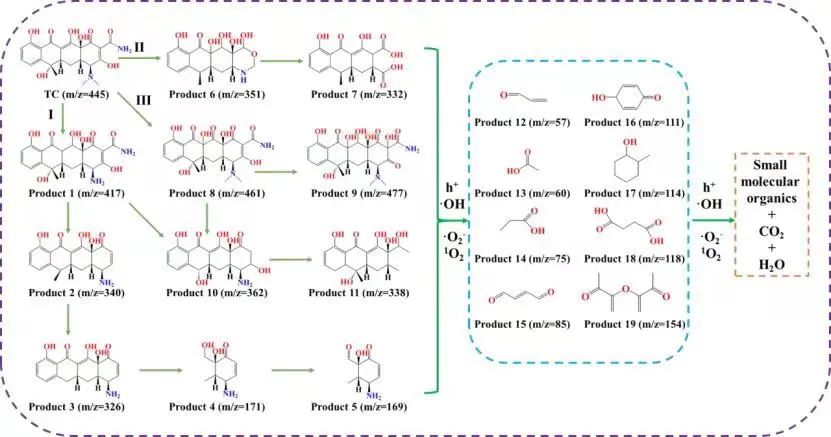 Z型 Fe-CN/BWO催化剂光芬顿降解TC的途径。