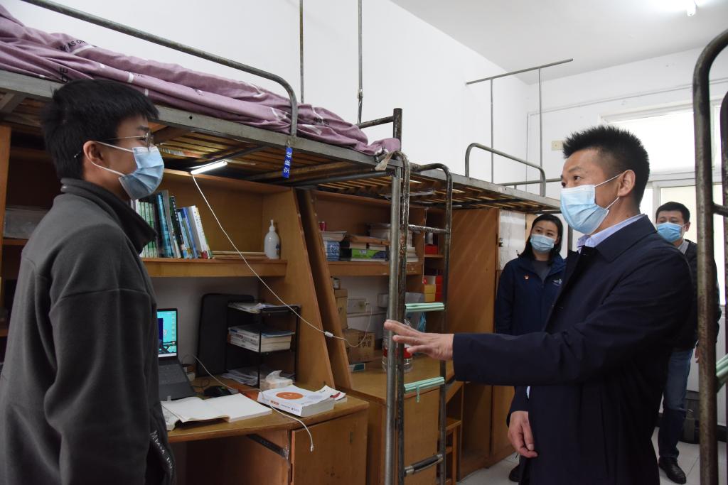 “有没有什么困难?”“生活质量有没有下降?”在学生宿舍,徐长节与学生亲切交流,关心学生学习生活情况,他叮嘱同学们不能松懈学习,要自觉自律,并在学习之余加强体育锻炼,以积极乐观的心态和强健的体魄去打赢这场战疫。