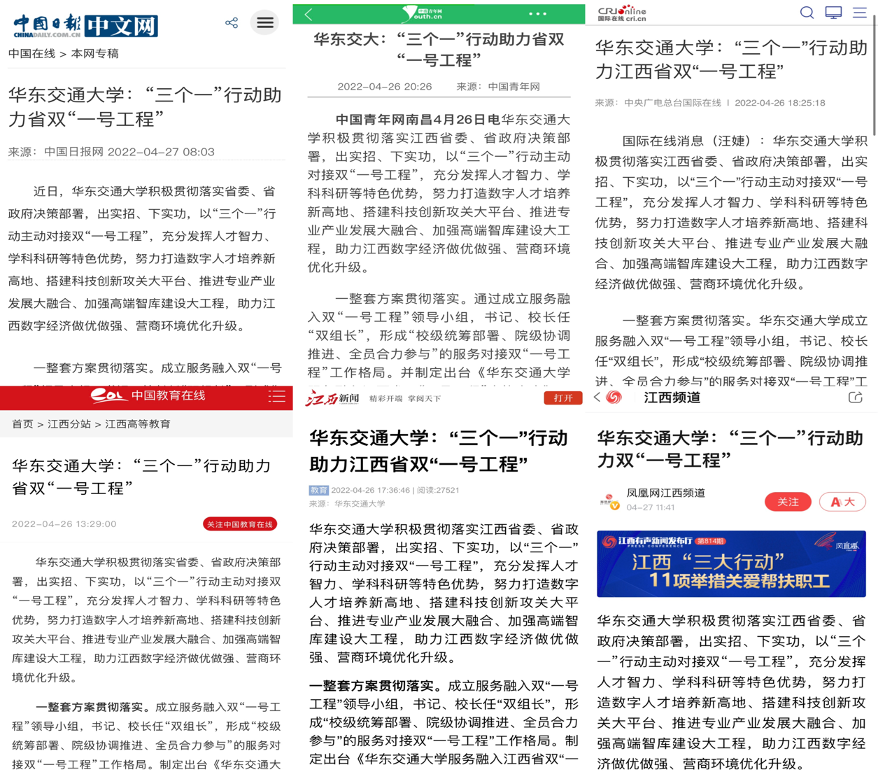 【江西教育网】华东交大:“三个一”行动助力江西省双“一号工程”