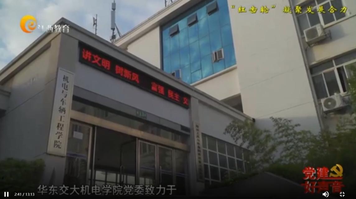 “机电红齿轮”党建品牌被江西教育电视台《党建好声音》栏目报道。