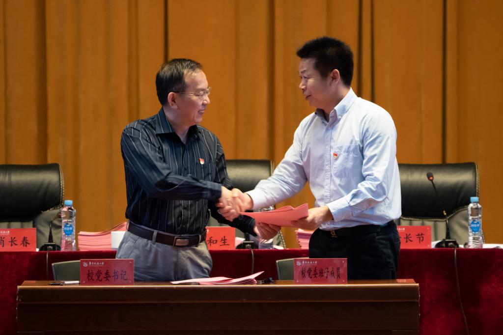 会上,柳和生分别与校党委委员、校领导,二级党组织书记、党群部门负责人签订2022年度全面从严治党主体责任书。徐长节与各学院、机关处室、教辅单位行政负责人签订2022年度全面从严治党主体责任书。