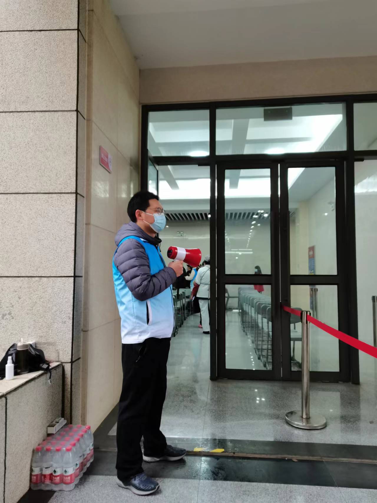 张祥志在25号教学楼核酸检测点开展志愿服务。