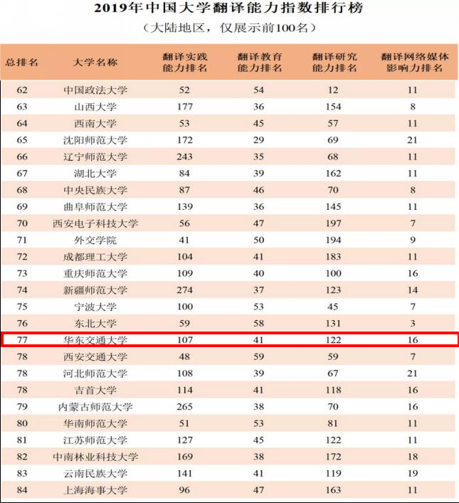 在2019年中国大学翻译能力指数排行榜中居全国第77位