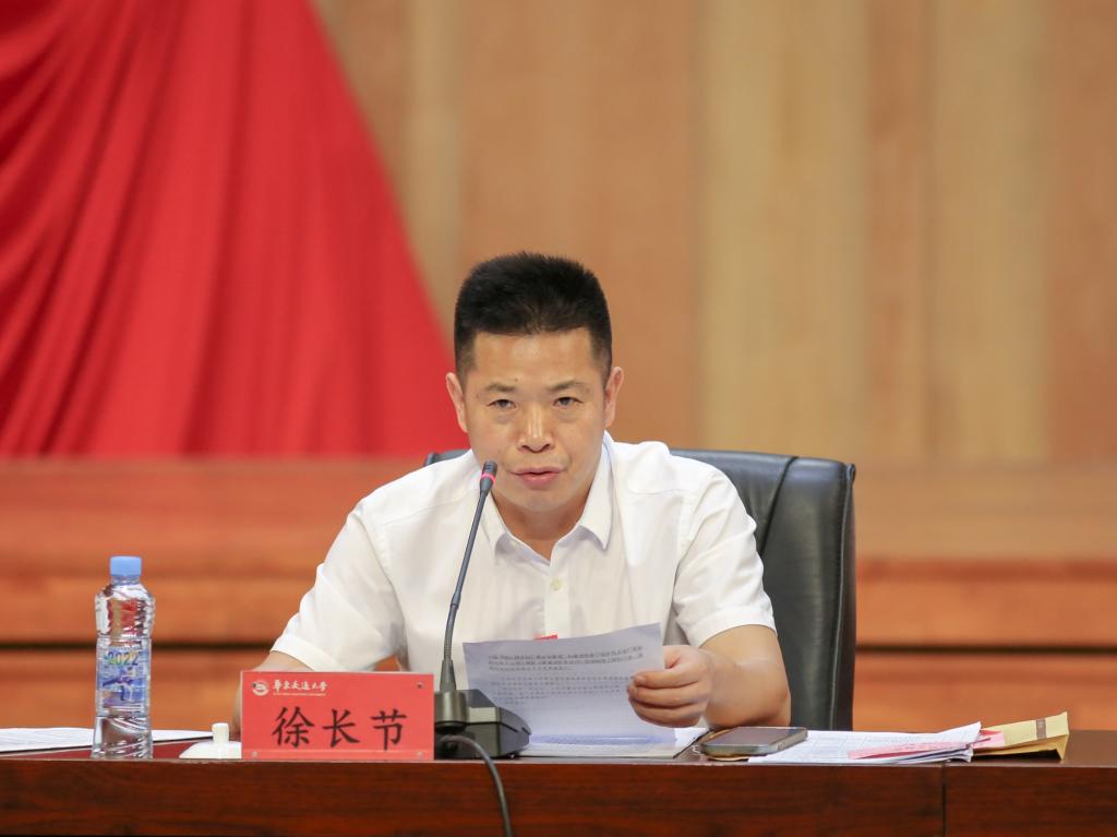 柳和生代表中国共产党beat365中文唯一官网第五届委员会向大会作题为《做新时代的铁人铁军奋力建设行业标杆、区域领先、国内一流、全球知名的特色高水平大学》的工作报告。(沈展锐 摄)