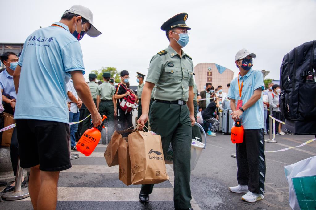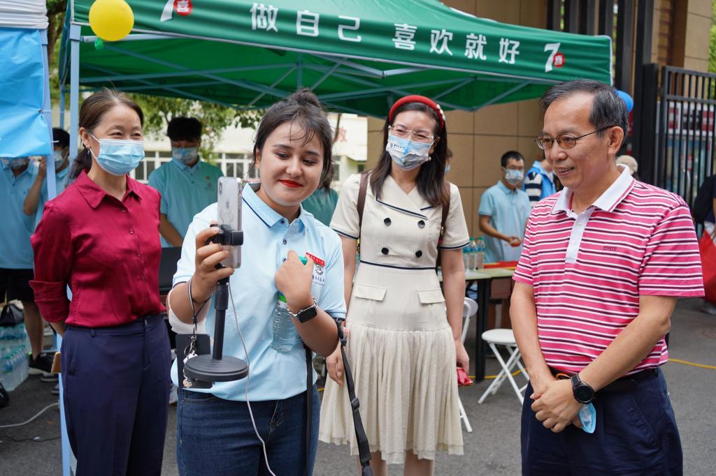 迎新期间,师生们不辞辛劳,用心布置迎新场地、整理学生资料,事无巨细地处理着新生入学大小事务,只为让同学们在入校时能感到如家般的温暖。正拿着手机直播的新疆姑娘沙依拉·地力夏提,是学校今年新入职的辅导员,她告诉记者,“今年因为疫情防控的原因,家长不能陪伴孩子入校,我想通过直播的方式给家长展示迎新现场,让他们放心更安心。”此外,本次迎新还巧妙融合了思政元素。青春快闪、乐器合鸣、主题宣讲、故事分享......9月4日上午,在迎新现场,华交学子激情上演青春快闪,通过“唱”“演”“讲”等形式,向党和祖国深情告白,抒发爱国奋斗之志,以昂扬向上的精神面貌开启新学期。