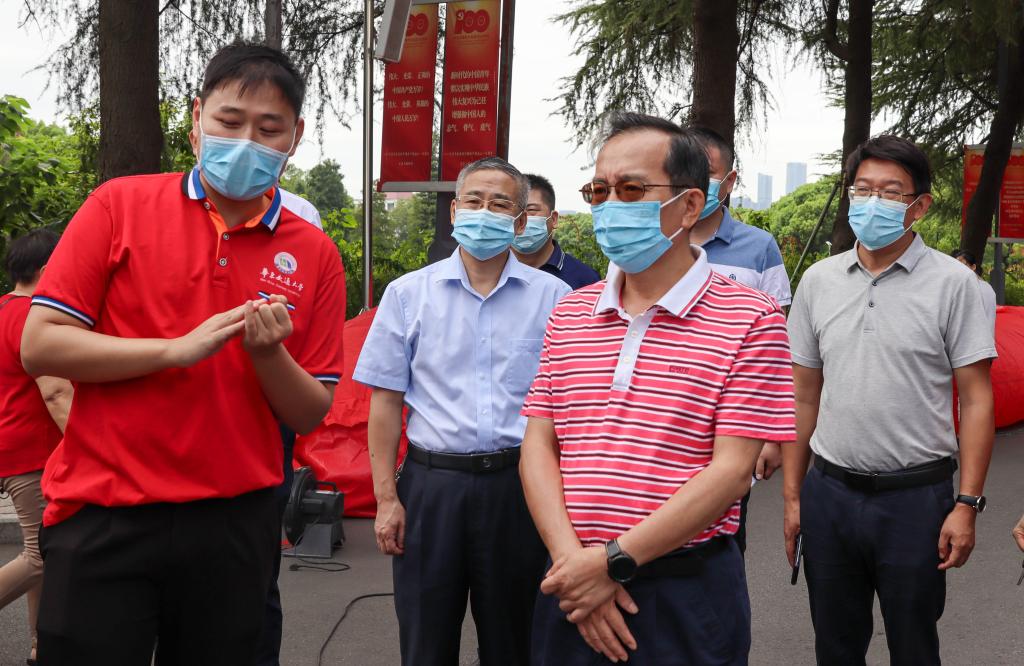 校党委书记柳和生,校党委委员、副校长范勇等查看迎新工作开展情况。