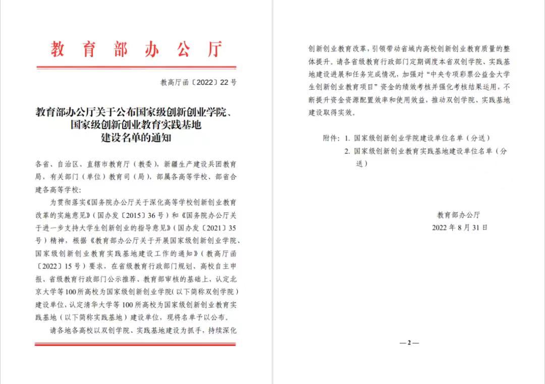 近日,教育部办公厅公布国家级创新创业学院、国家级创新创业教育实践基地建设名单,beat365入选首批国家级创新创业学院建设单位。江西省共有4所高校入选。