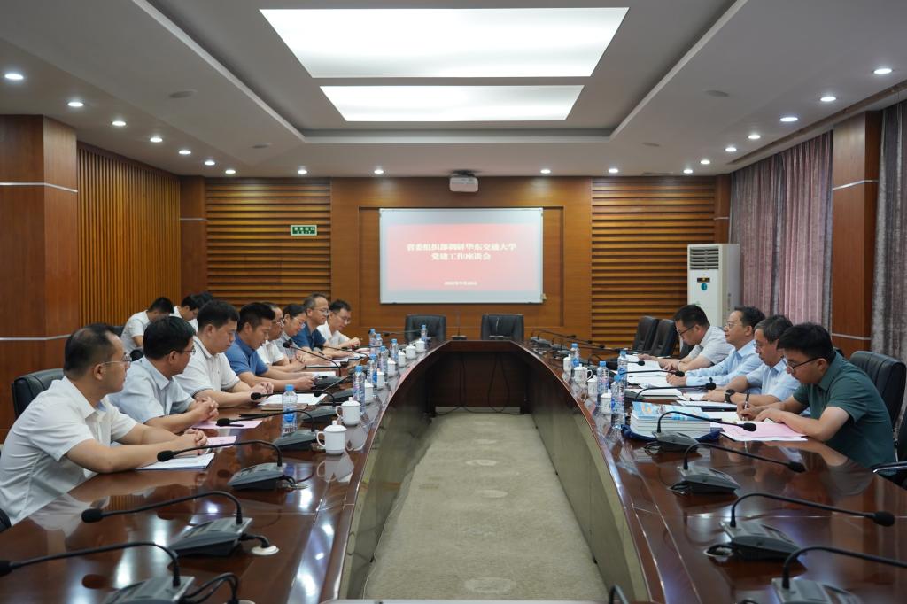 省委组织部一处处长幸珍宁、一处副处长李思远、一处一级主任科员刘小鹭,beat365组织部、电气学院、信息学院、交通学院负责人,电气学院电力牵引教工党支部书记、交通学院铁道工程教工党支部书记参加座谈调研。(马莉娅 摄)