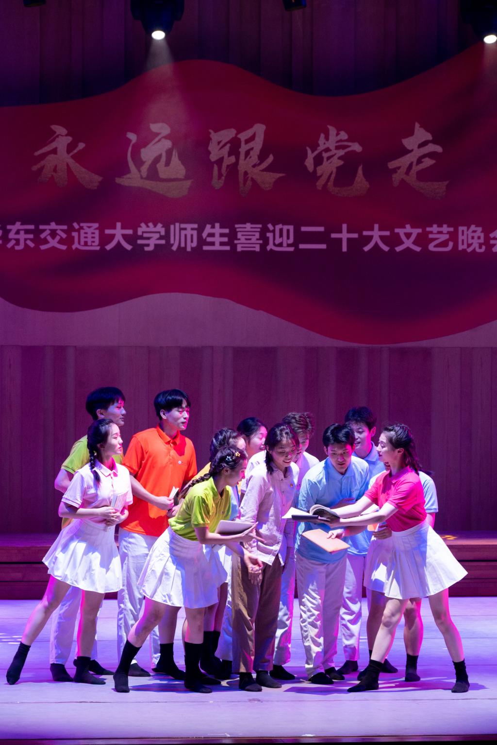 整场演出内容丰富、形式多样、充满正能量,一个个灵动的舞姿,一句句铿锵的宣讲,一声声真情的歌唱表达了华交师生浓浓的爱党爱国之情,传递出对党的二十大胜利召开的热切期盼。