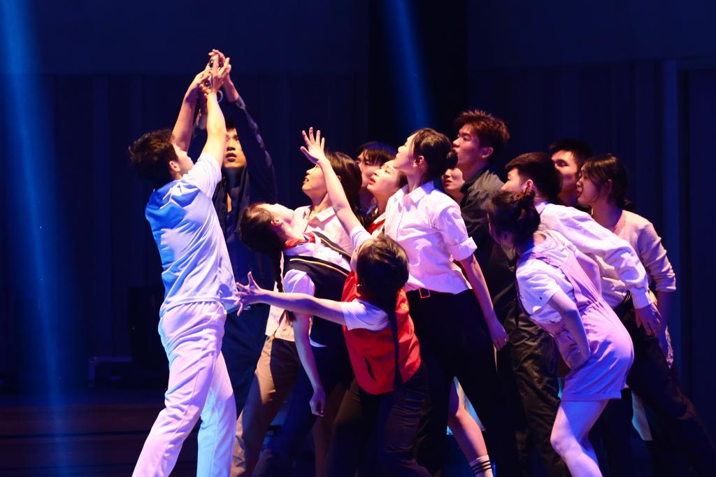 “华交出道在铁、出彩在铁、出路在铁、血脉中流淌着红色基因,精神上熔铸着‘铁’的特质”,《家国一体,命运与共》的宣讲将学校与国家紧紧联系在一起,华交师生定将心系“国家事”、肩扛“国家责”、胸怀“两个大局”、牢记“国之大者”、立足“省之大业”、着眼“校之大计”,把满腔铁血熔铸于日常的坚守、镌刻在平凡的岗位、倾注进不懈地奋斗;“哪有什么岁月静好,不过是有人在替你负重前行”,原创舞蹈《我们这一代》通过片段式的表达,刻画了生活中平凡却伟大的人物——维护社会治安的警察、疫情中的逆行者医生、重庆山火中的凡人英雄消防员……当面临困难,他们总是不顾个人安危,为大家撑起一片天;情景表演《奉献》从细微处入手,体现小人物、大情感,小事件、大情怀的格局——一位女老师带病奋斗在教育一线,尽心尽力为学生辅导,燃烧自己,照亮他人;二胡联奏《游击队之歌》 、《骏马奔驰保边疆》、古筝重奏《我和我的祖国》、管乐重奏《钢铁洪流进行曲》曲调激昂、气势磅礴,回顾峥嵘岁月,从革命先烈精神中汲取奋进力量;“唱支山歌给党听,我把党来比母亲……”节目《党的光辉照我心》将场内气氛推向高潮,全场观众齐声合唱,把对党的祝福蕴含在深情的歌声中,华交人对党的告白回荡在音乐厅,掌声和欢呼声经久不息。