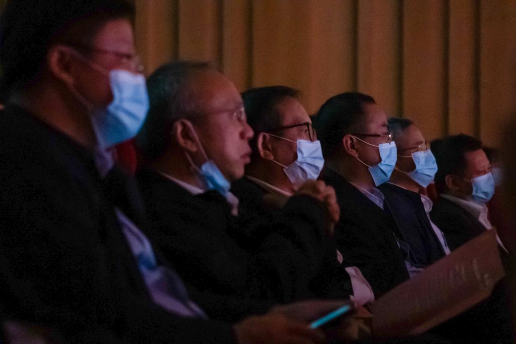 校属各部门主要负责人,各学院院长、党委书记,学院师生代表,离退休员工代表现场观看晚会。(摄/韦玉婷、樊权标、黄梓轩、郑在童、王臻、桂梦真、伍悦、方晨旭)
