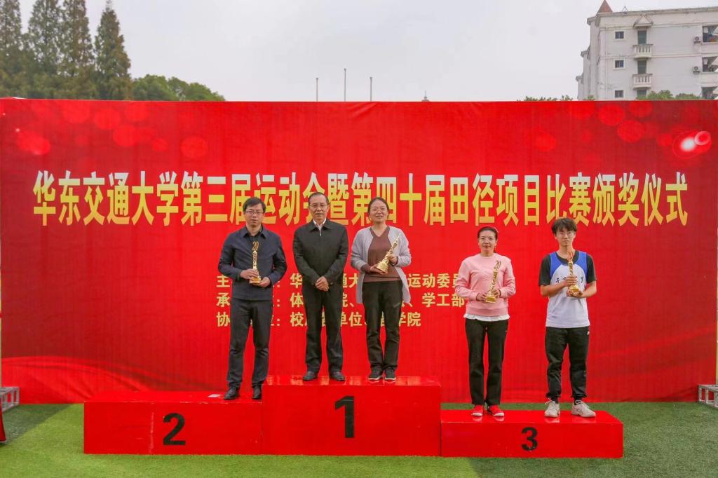 经过3天紧张激烈角逐,电气学院摘得桂冠,交通学院、机电学院、经管学院、土建学院、研究生、信息学院、软件学院分别位列运动会团体总分第二至第八名。 土建学院代表队获教工团体第一名,机关代表队获第二名,机电学院与理学院代表队并列第三名。电气学院获体育道德风尚奖第一名,交通学院、土建学院、经管学院、机电学院、艺术学院分别位列第二至六名。电气学院获得田径项目团体总分第一名,交通学院获第二名、机电学院、经管学院并列第三。电气学院、宣传部、团委获体育事业突出贡献奖。