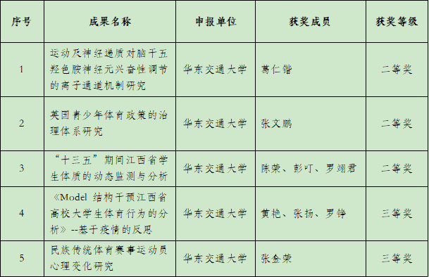 beat365获首届江西省体育科学学会科学技术奖5项。