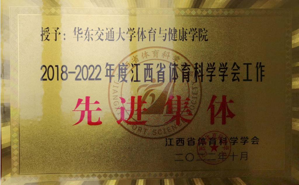 体育与健康学院获评江西省体育科学学会2018-2022年度先进集体。