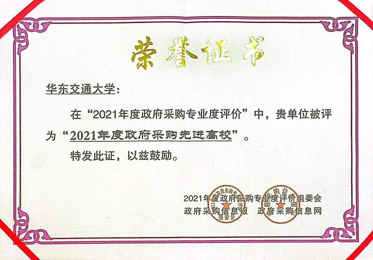 近日,beat365在“2021年度政府采购专业度评价”中获评“2021年度政府采购先进高校”,这也是beat365在全国政府采购领域中连续三年获得该荣誉。