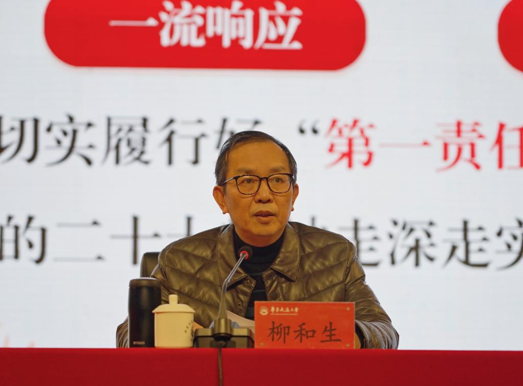 柳和生强调,学习宣传贯彻党的二十大精神,是当前全校的首要政治任务,也是今后一个时期全校各级党组织的“头等工作”。全校各级领导干部特别是各级党组织书记要把学习宣传贯彻党的二十大精神摆上重要日程,按一流标准、一杆到底的要求,切实履行好“第一责任”,持续推动全校学习宣传贯彻党的二十大精神走深走实,确保党的二十大战略部署在学校不折不扣落实落地。