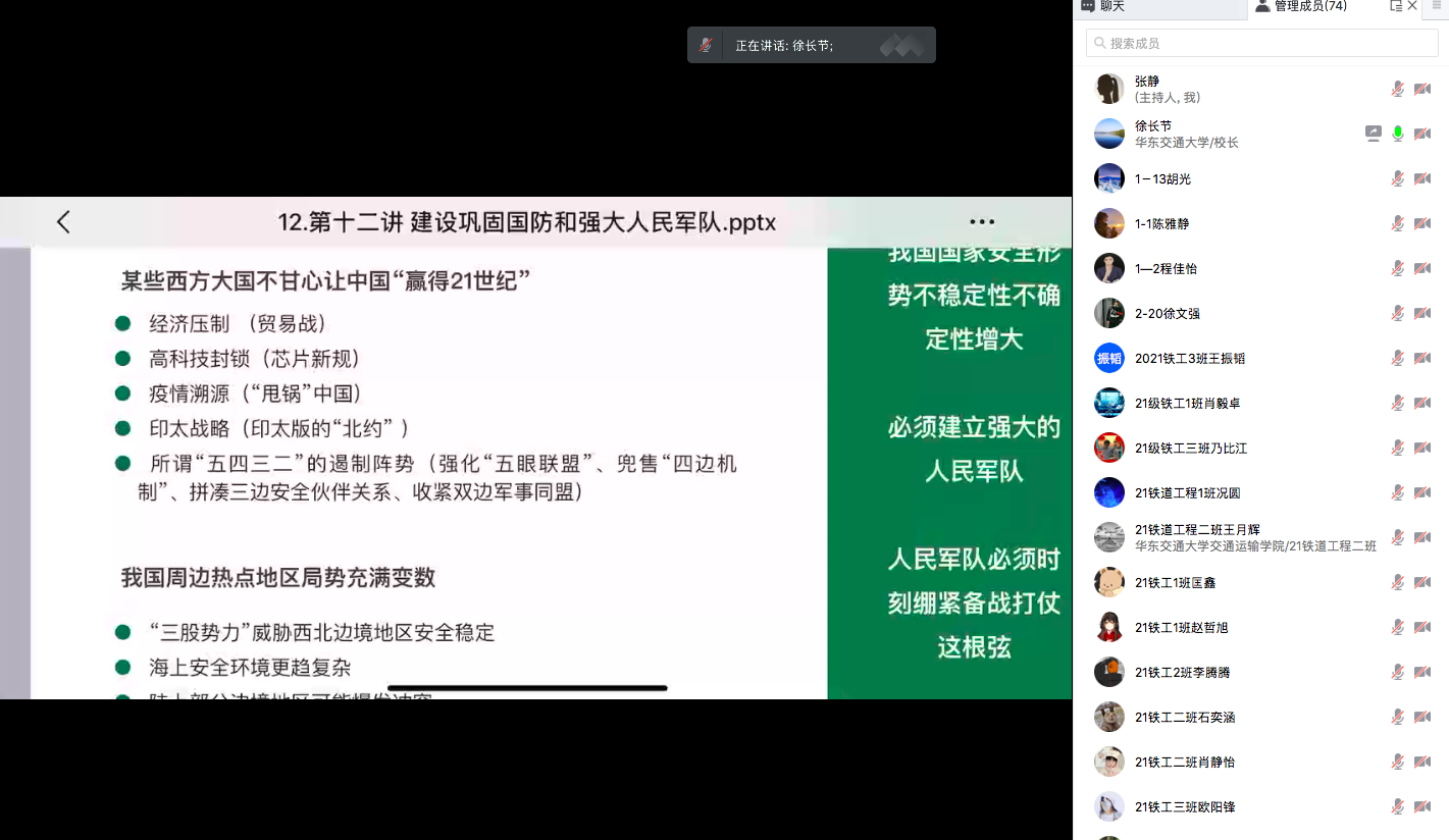 徐长节线上为交通学院2021级铁工1、2、3班学生上思政课。