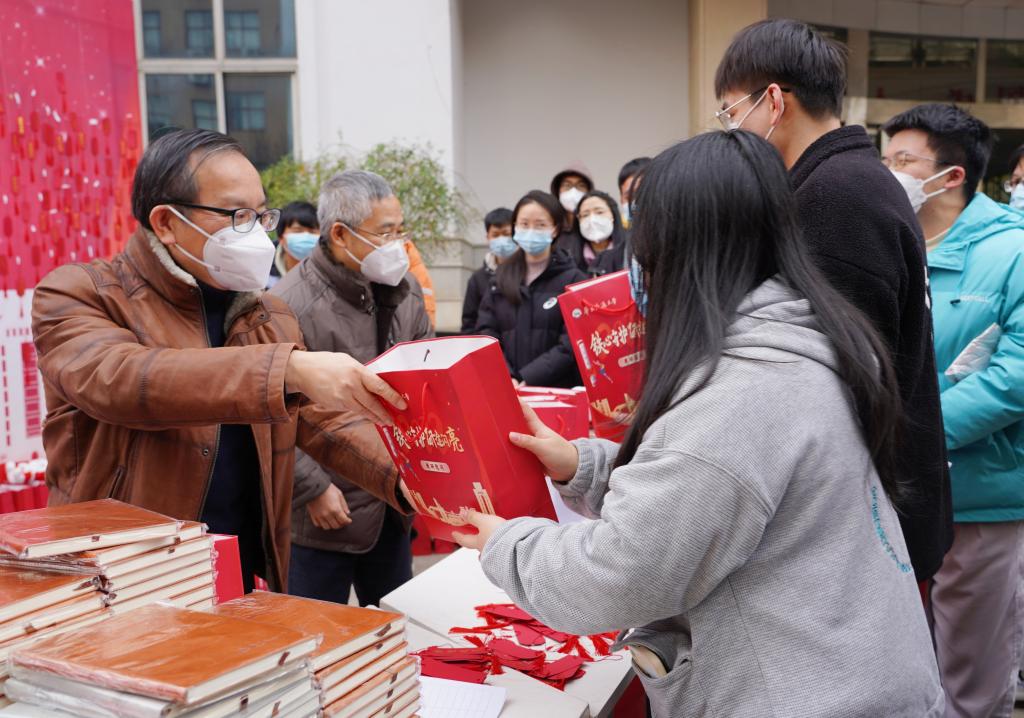 一“研”为定,金榜题名,印满祝福语的慰问礼包和手写祝福卡片……12月20日,学校在南北区图书馆前开展考研送温暖慰问活动,为“研”途上的学子送去考研加油包,为学子们加油鼓劲。