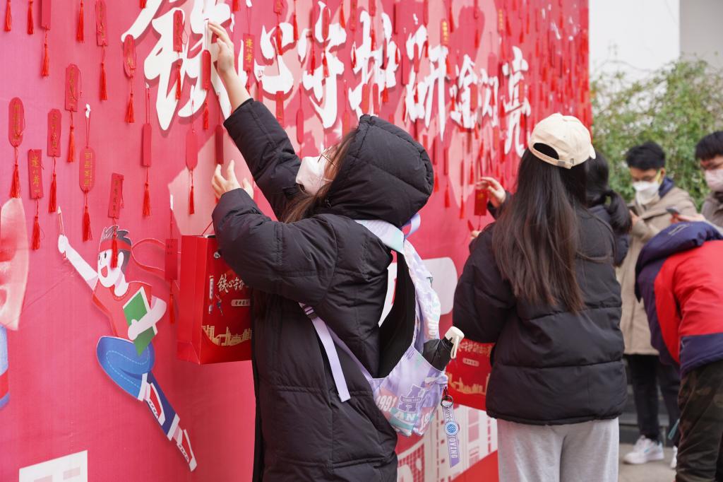 “临近考试,学校这一贴心举动让我们倍感温暖。学校给予的心理支持和人文关怀,让我更有信心。有了这份关怀和鼓励,我一定努力高分上岸”,刚刚在许愿墙上贴好祝福卡片的考研学子周川高兴地说。(马莉娅 摄)