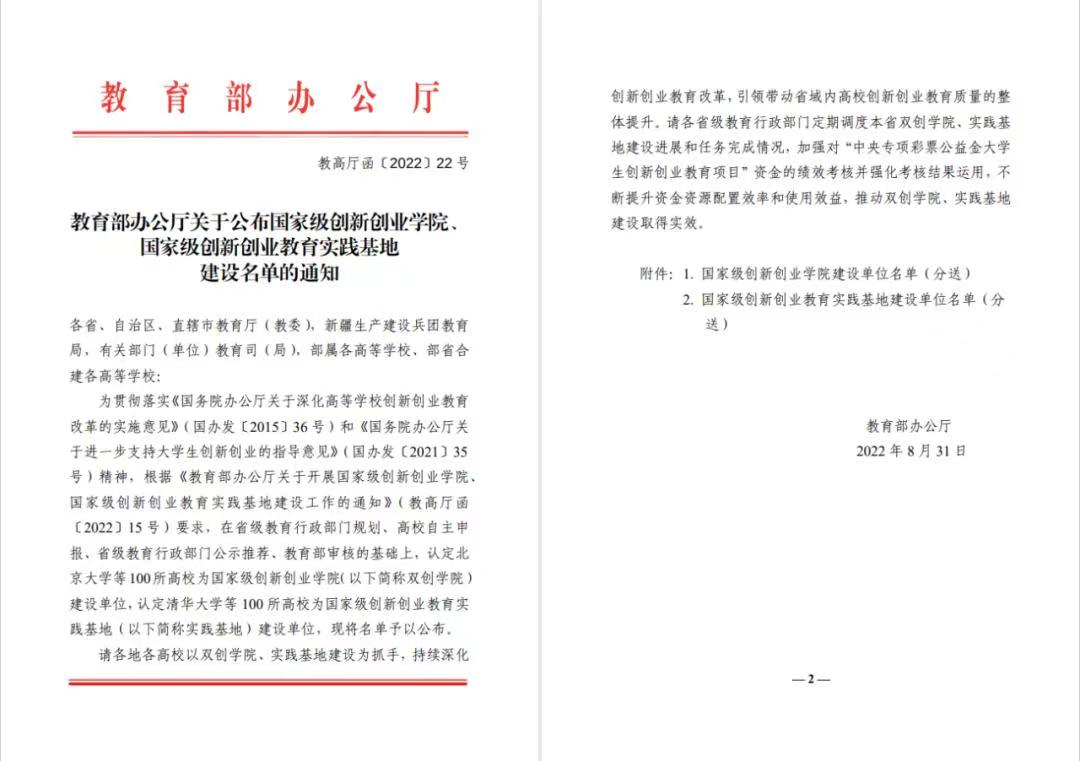 8月31日,教育部办公厅公布国家级创新创业学院、国家级创新创业教育实践基地建设名单,beat365入选首批国家级创新创业学院建设单位。江西省共有4所高校入选。这是继学校获评“全国创新创业典型经验高校”“教育部深化创新创业教育改革示范高校”“全国高校实践育人创新创业基地”和“国家级众创空间”后,又一个国家级殊荣,是对beat365创新创业教育工作和创新创业人才培养质量的再次高度肯定。