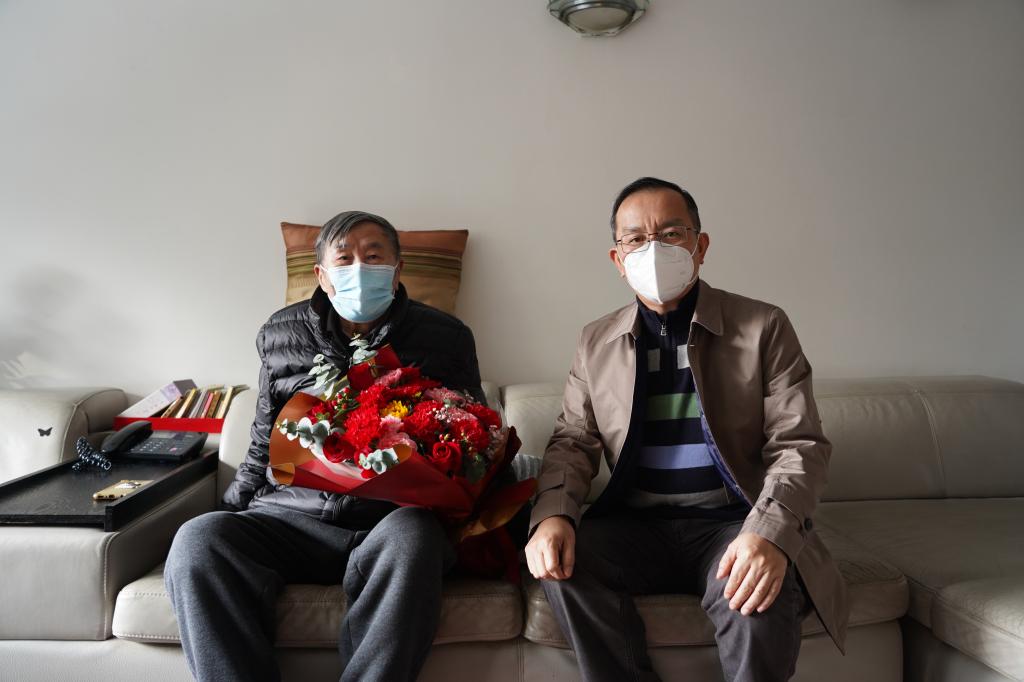 校党委书记柳和生走访慰问离退休老同志欧阳名丁以及校友卢秀珍。