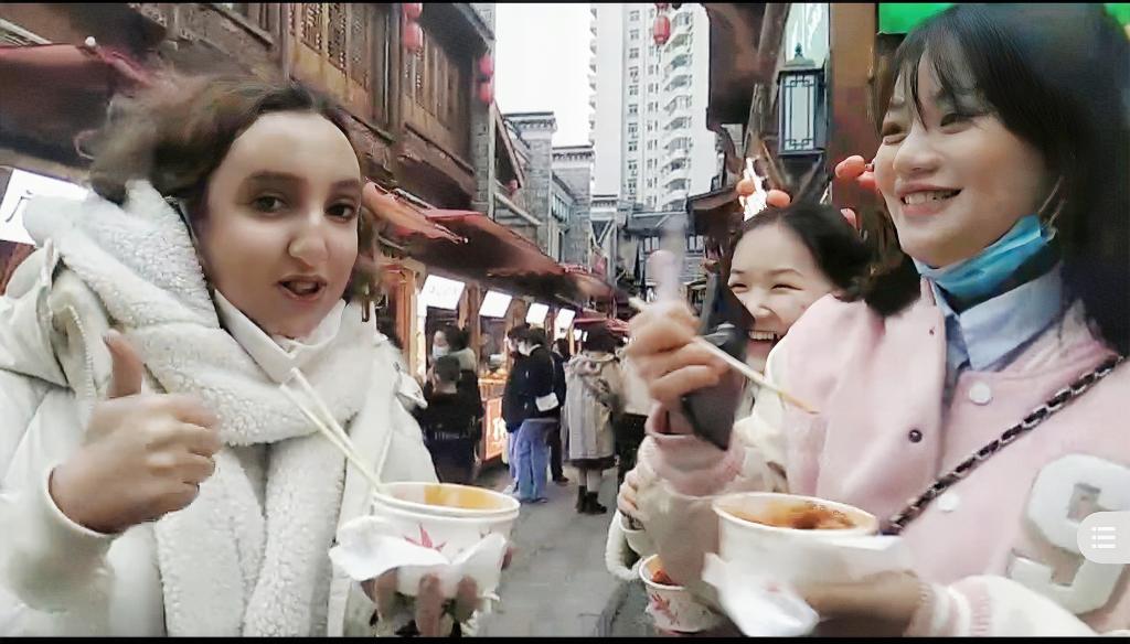 “这儿太有意思了!”来自摩洛哥的Hajar带着“好奇”跟随大家走街巷、品美食,了解中国年俗。品尝了一口同伴打包的白糖糕后,他脱口而出刚跟中国同学学会的地道南昌话:“绝杀!”