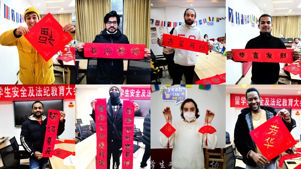 在不久前的小年,留学生们还一起写春联、话民俗、送祝福,感受中国文化的魅力,抒发迎接新年的喜悦。“在中国的传统文化中,写春联和写福字是必不可少的。”留学生们拿起毛笔,一笔一划认真书写,一幅幅墨香四溢、饱含祝福的春联和祝福,传递出浓浓的年味。