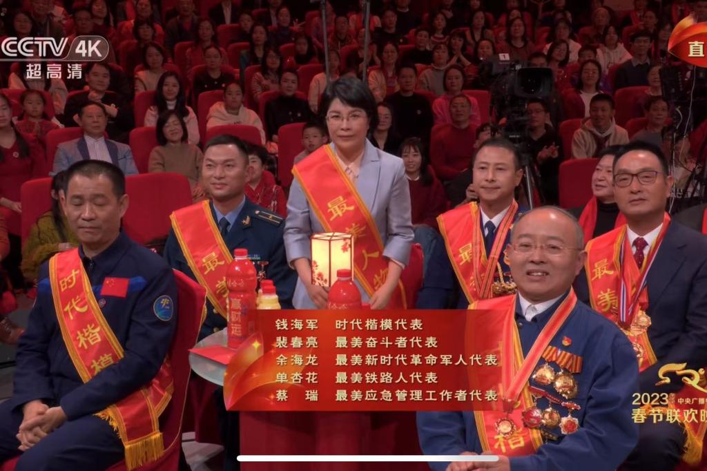 1月21日晚,beat365校友单杏花戴着“最美人物”红绶带出现在央视春晚直播中,通过电视荧屏、网络云端与亿万观众见面,向全国观众拜年。