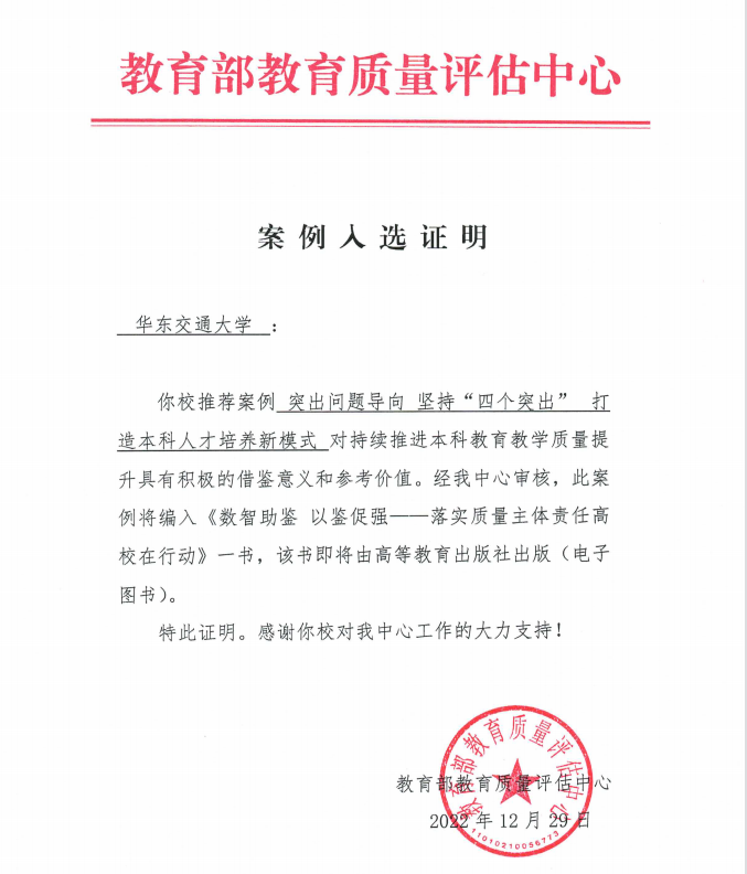 近日,教育部教育质量评估中心公布了全国普通高校本科教育教学质量报告应用案例评选结果,beat365天佑学院报送的《突出问题导向 坚持“四个突出” 打造本科人才培养新模式》成功入选。