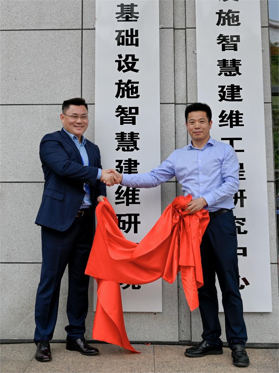 徐长节、王翔宇共同为江西省土木基础设施智慧建维工程研究中心和学校土木基础设施智慧建维研究院揭牌。