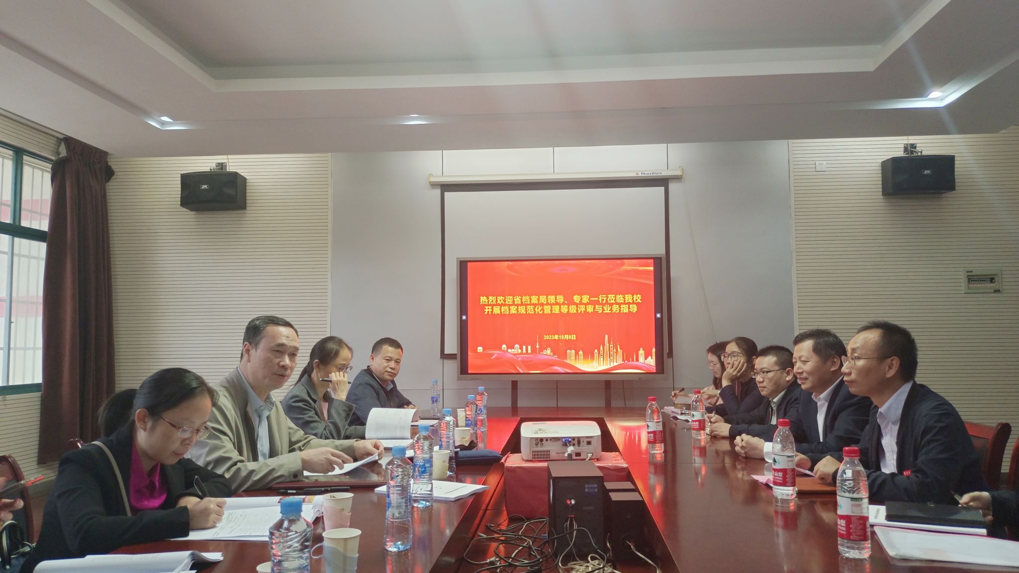 黄志超代表学校对评估组一行表示欢迎和感谢,并向评估组介绍学校办学特色和档案工作基本情况。