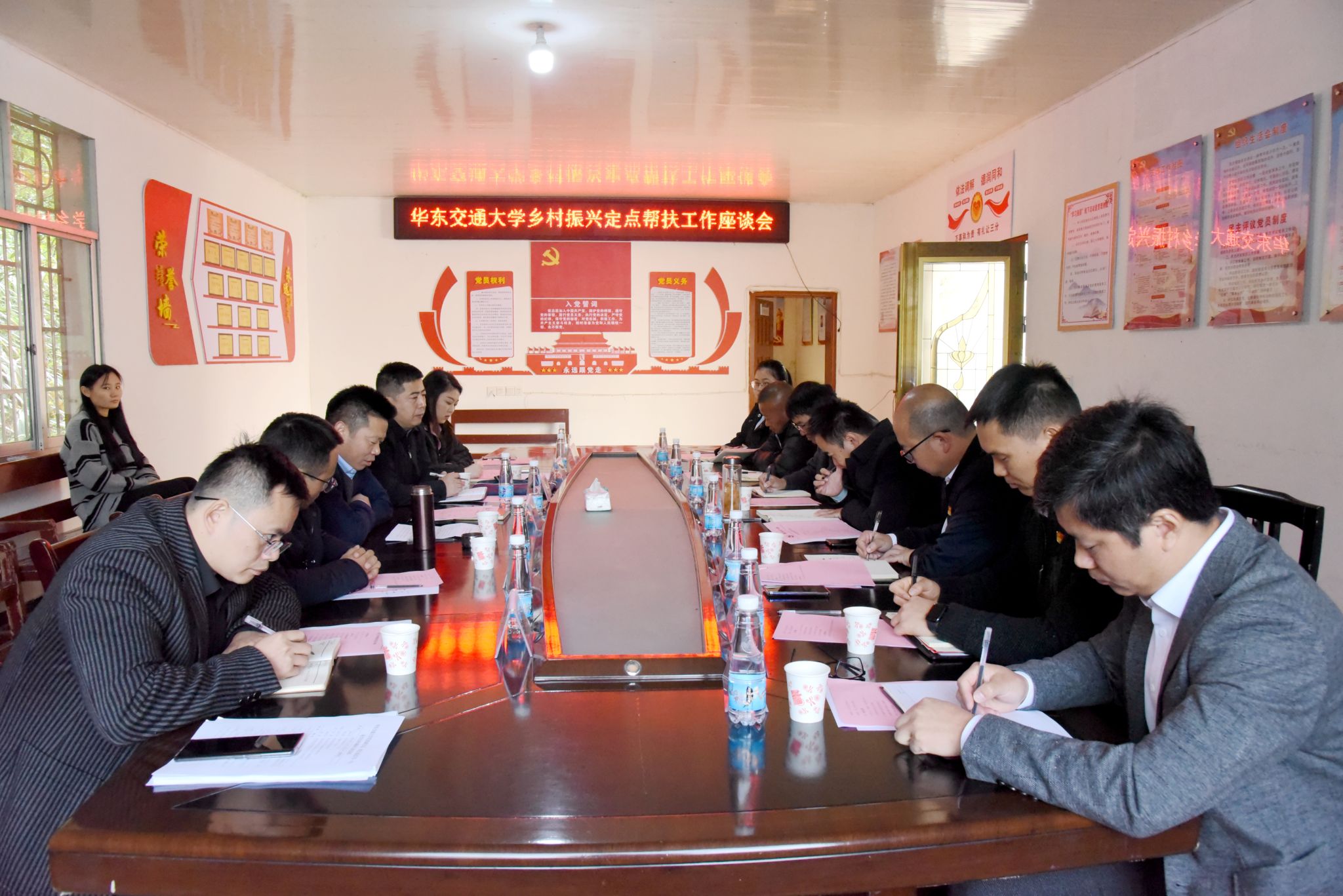 座谈会上,徐长节听取了学校驻村工作队帮扶情况介绍,对驻村帮扶工作给予肯定,并代表学校对武宁县委县政府、罗坪镇委镇政府一直以来对关山村乡村振兴工作的指导支持,对学校驻村工作队和定点帮扶工作的关心厚爱表示感谢。就进一步做好乡村振兴工作,他强调,要重传承,交好驻村帮扶的“接力棒”,新任驻村干部要迅速转换身份,深入田间地头,了解村情民意;要加强政策学习,吃透富农兴村政策知识,提升履职能力水平。要强引领,打造党建赋能的“火车头”,坚持以学校“火车头”党建提升工程为牵引,持续在建强村级党组织上做文章,打造狠抓党建促乡村振兴的强劲“火车头”,走出一条“党建+”产业发展的“新路子”。要聚合力,答好乡村振兴的“满意卷”,持续聚焦重点、聚集资源、聚合力量,巩固拓展脱贫攻坚成果,发展壮大村级集体经济,要认真落实帮扶举措,保证全部按期落地见效,确保年度驻村帮扶指标全面达标。
