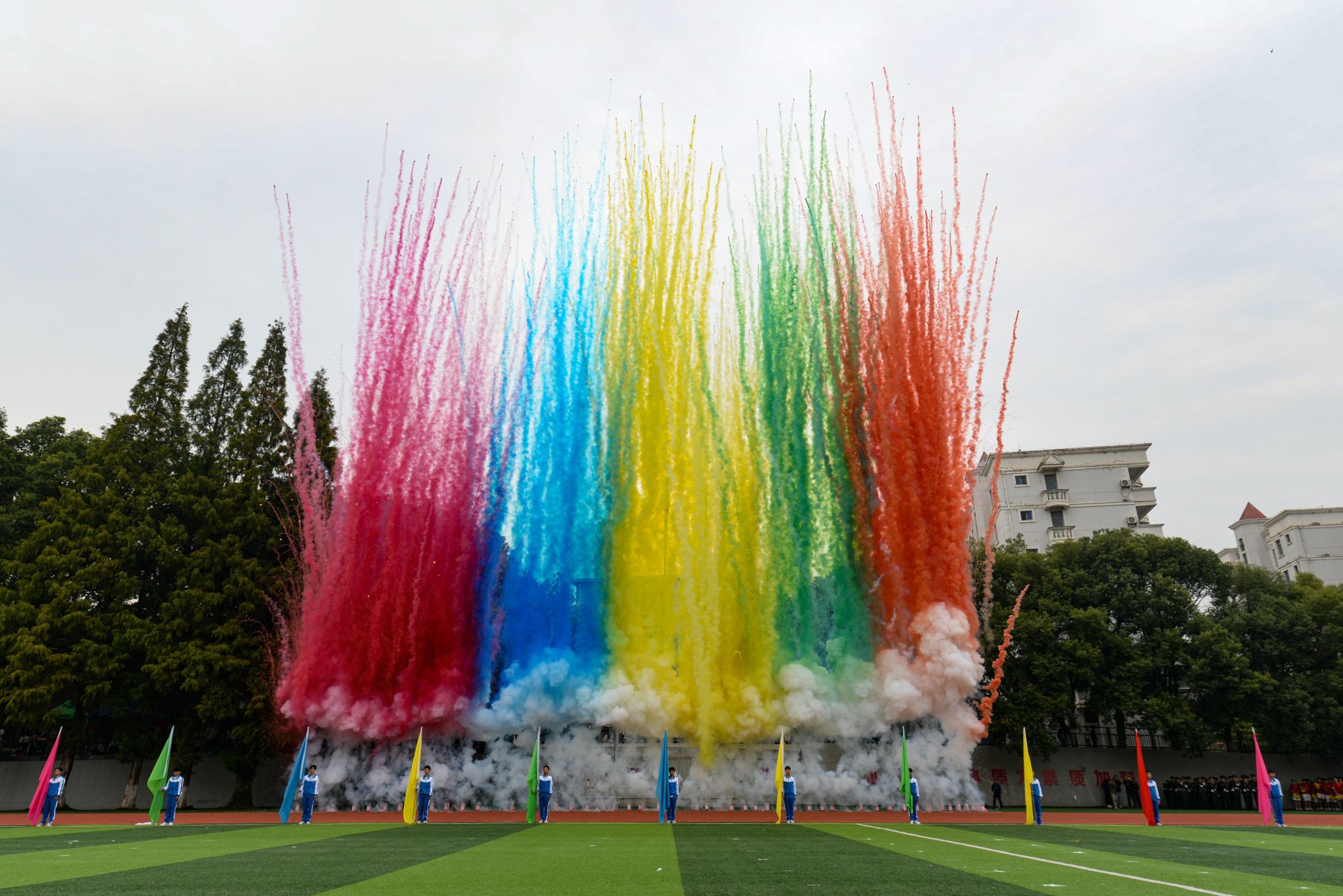 伴着激情洋溢、热情奔放的音乐,九条长龙腾空而起,在操场上尽情奔腾争跃,盘踞、冲刺、跳跃.....气势磅礴,龙游四海,以龙腾九霄造型完美收尾,展现了华交师生不屈不挠、奔腾争跃的如铁意志;长拳表演气势磅礴,动作整齐划一、刚柔相济,一招一式、一开一合,势势相承,流畅舒展;啦啦操表演活力四射、热情洋溢,托举侧翻、欢快律动,一展华交学子的青春风采。