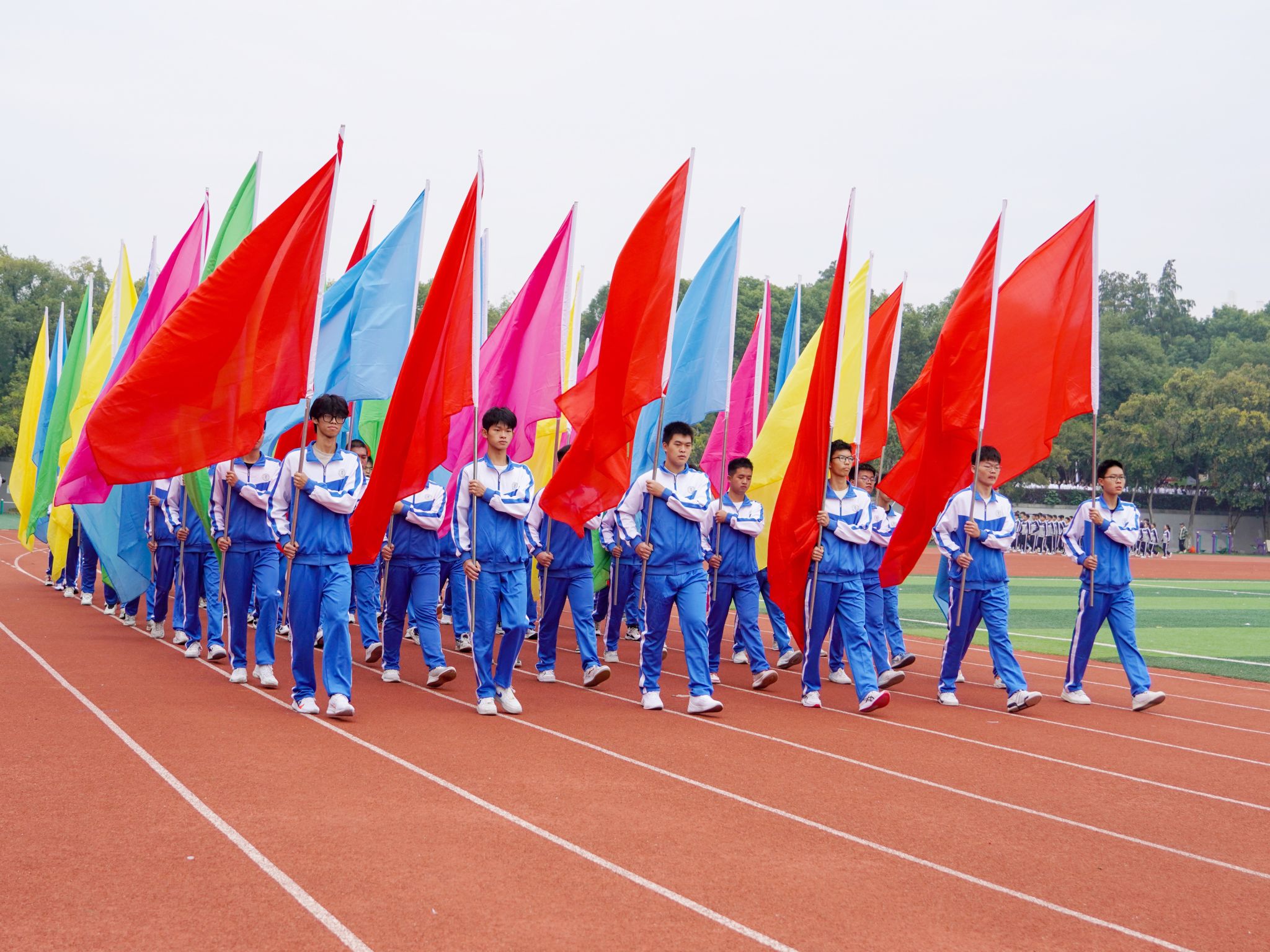 伴着激昂的《运动员进行曲》,国旗队、校旗队、彩旗队和21个师生方阵队依次入场,他们激情澎湃,步履铿锵,喊着响亮的口号,迈着坚定的步伐向主席台走来。庄严肃穆的《义勇军进行曲》响起,全场师生行注目礼,齐唱国歌。