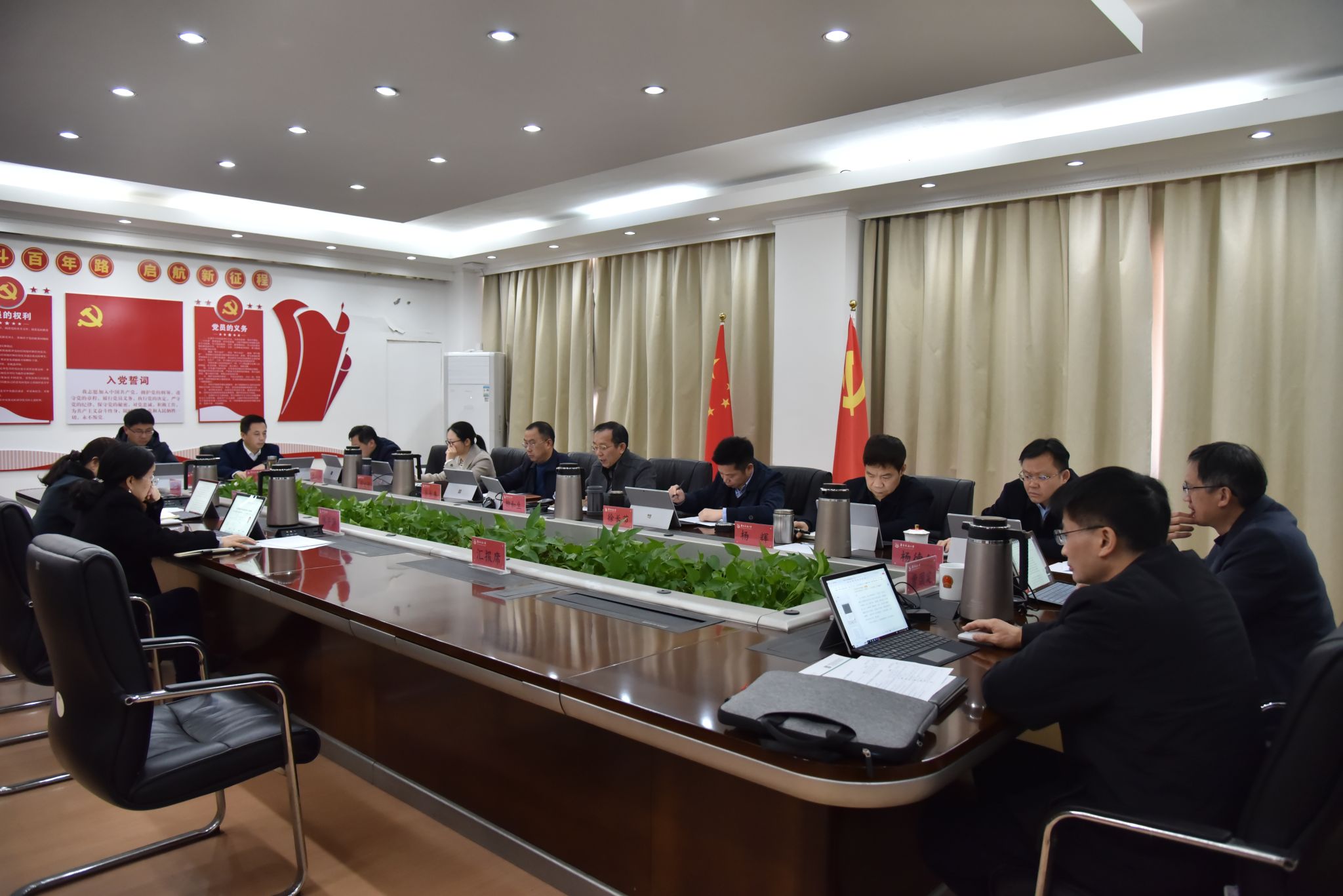 会议强调,要认真学习贯彻习近平总书记在纪念毛泽东同志诞辰130周年座谈会上的讲话和国家主席习近平发表的二〇二四年新年贺词。要深学笃行习近平新时代中国特色社会主义思想,深刻把握“两个结合”的实践要求,自觉用中国化时代化的马克思主义武装头脑、指导实践、推动工作。要全面落实新时代党的建设总要求,扎实推进党风廉政建设和反腐败斗争,更好激励干部担当作为,以高质量党建引领保障高质量发展。要以新气象新担当展现新作为,谋深铺实新一年工作,实化细化各项工作举措,全力以赴抓机遇、促发展,用心用情为师生办实事,增强师生的幸福感、获得感。