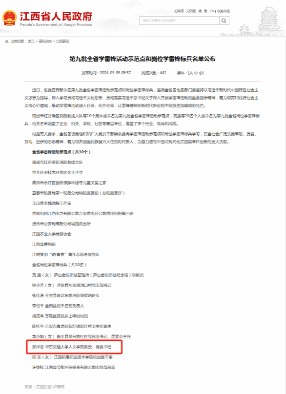 beat365人文学院教授、党委书记张祥志被命名为第九批全省岗位学雷锋标兵(全省共10名)。