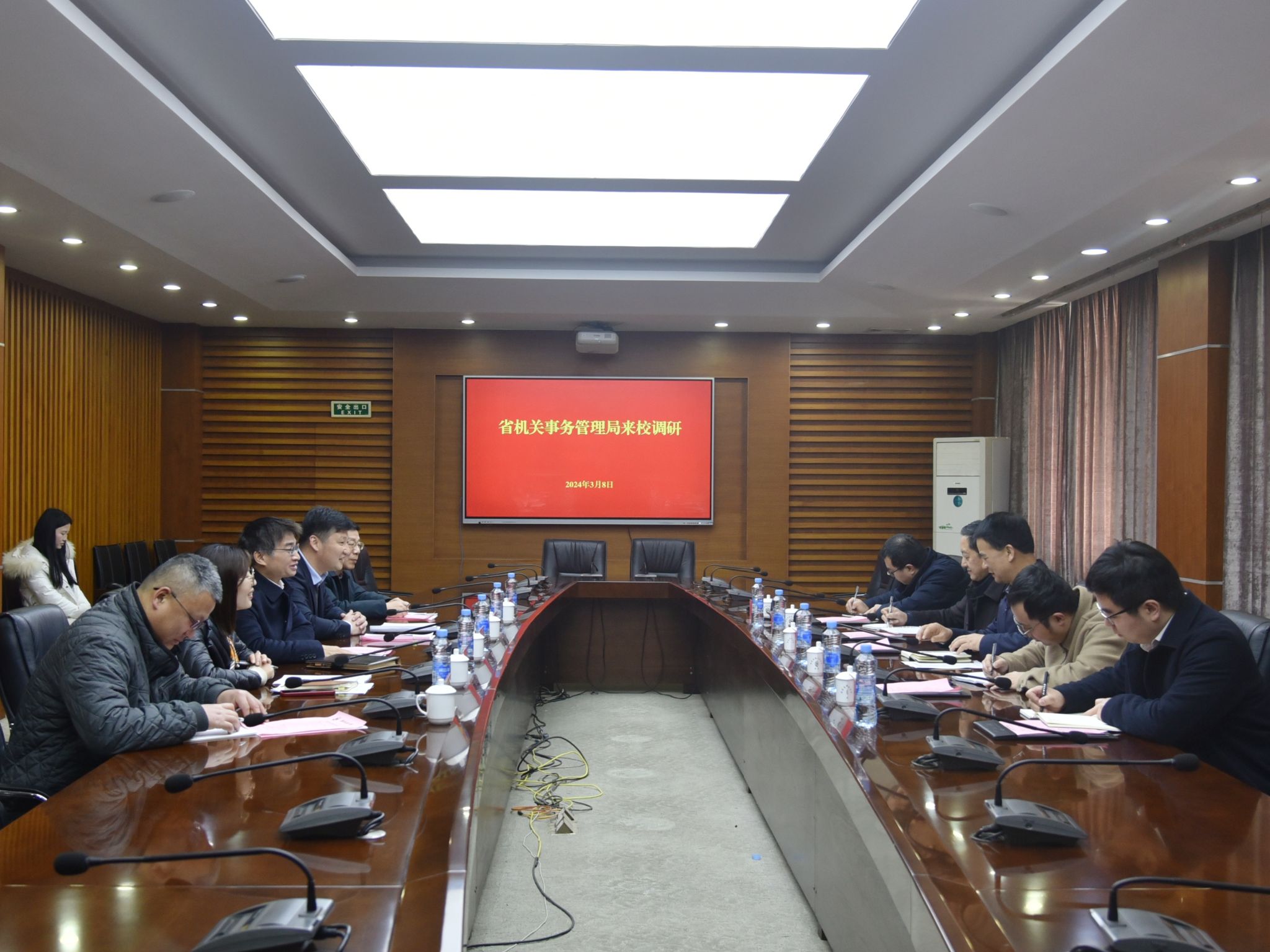 3月8日,省机关事务管理局党组成员、副局长邱永强一行来校调研公共机构能源资源节能工作。会前,校党委书记柳和生亲切接见了邱永强一行。校党委委员、副校长欧阳志刚出席并主持座谈会。