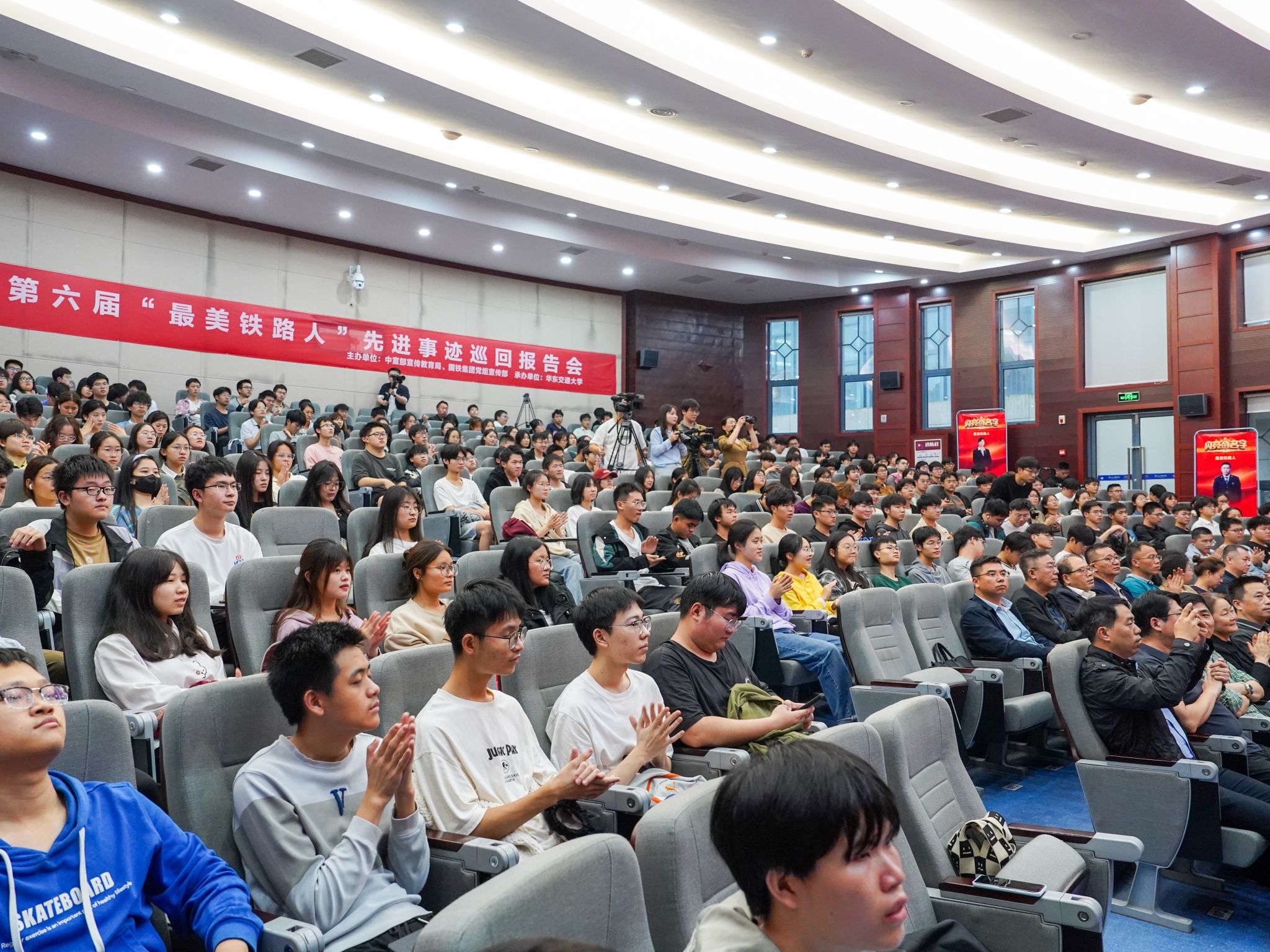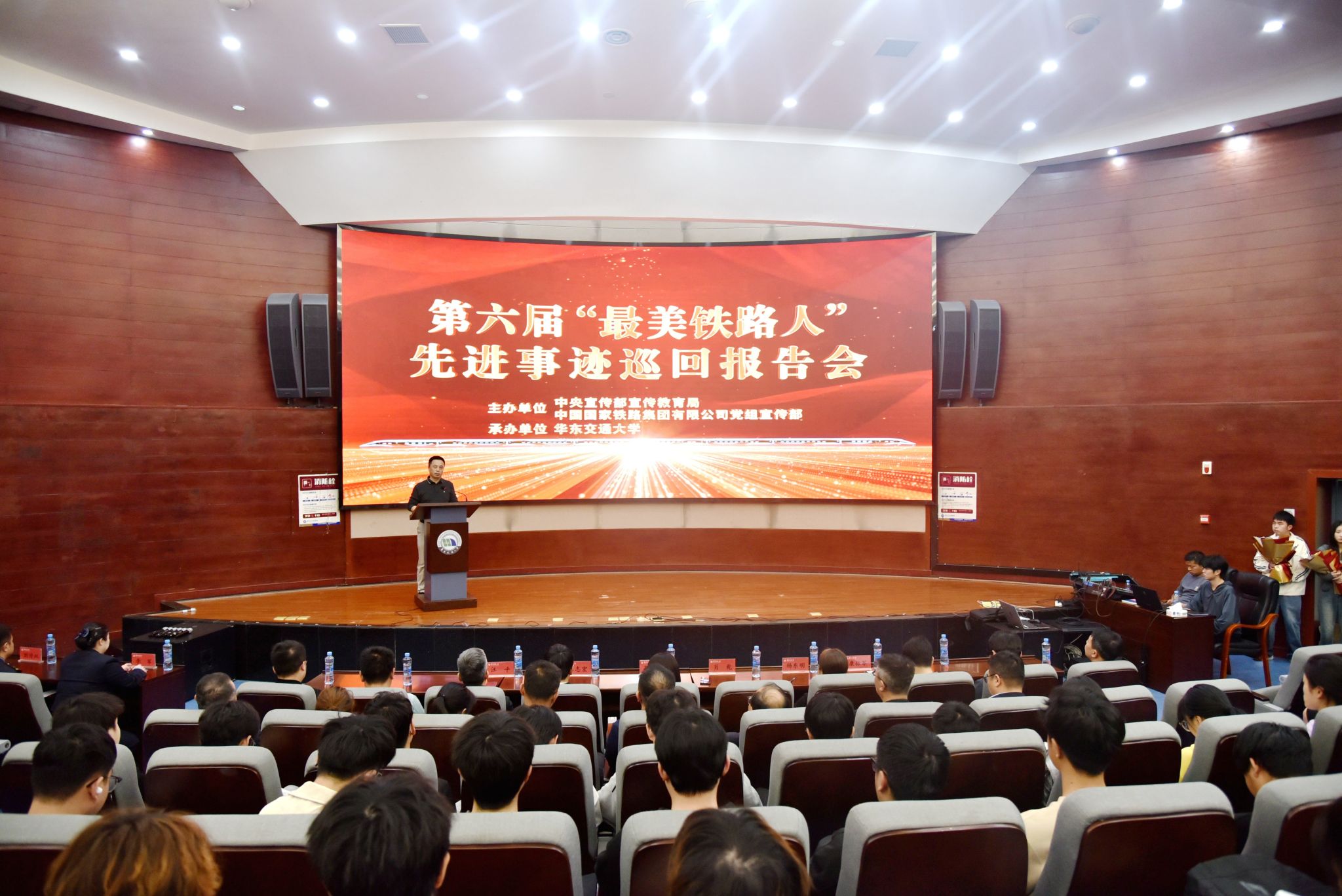 4月1日,由中宣部宣传教育局、国铁集团党组宣传部主办,beat365承办的第六届“最美铁路人”先进事迹巡回报告会在北区圆形报告厅举行。校党委委员、副校长肖乾致辞。国铁集团党组宣传部宣教理论处副处长孙菁出席。300余名师生代表现场聆听报告。